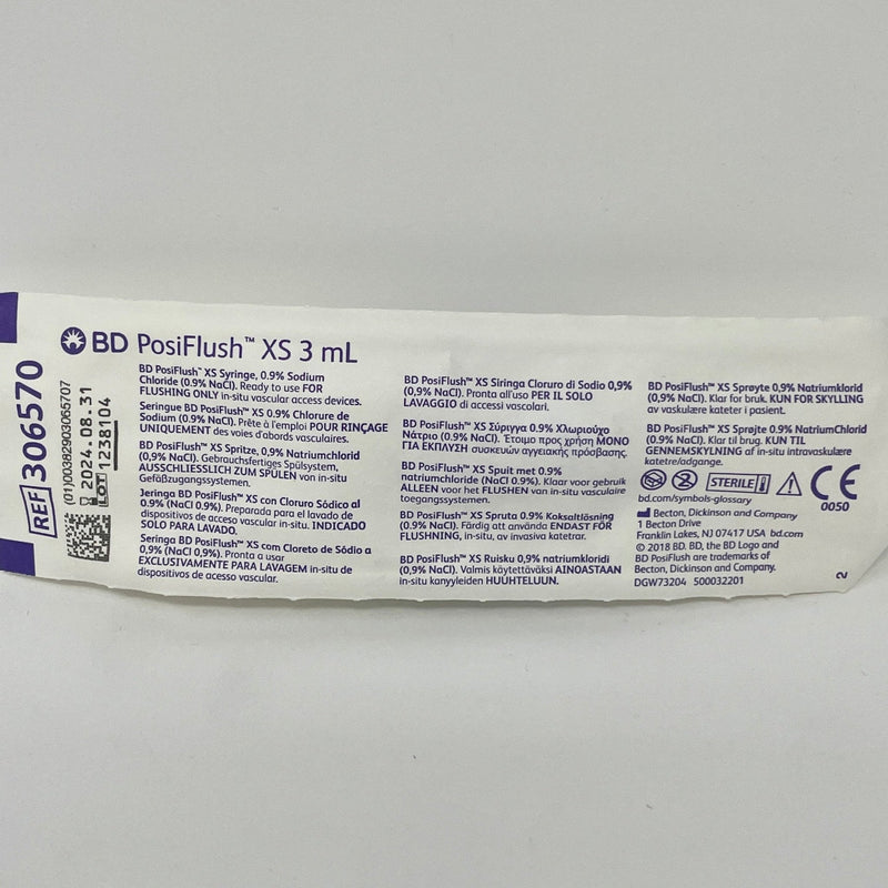 Filled with 0.9% preservative-free saline, the PosiFlush XS syringe is externally sterile, ready to use, and eliminates the need for preparation, saving time and enhancing safety in clinical settings.