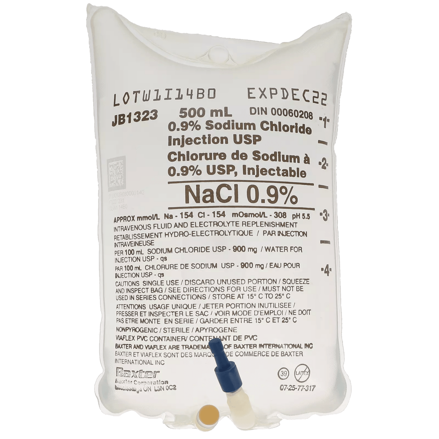 - Standard 0.9% Sodium Chloride (Normal Saline) IV solution