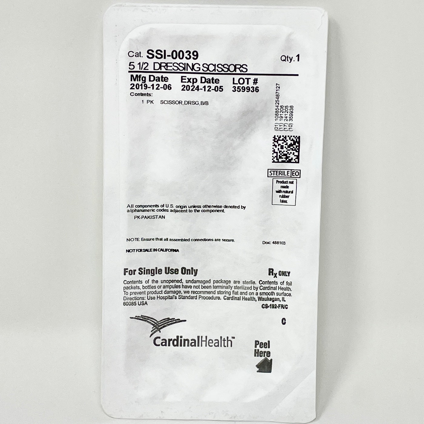 The Dressing Scissors 5.5" ~ Sterile are high-quality surgical scissors designed for safe and efficient cutting of dressings and bandages. Featuring a curved, satin-finish blade, these scissors provide precision while minimizing the risk of injury to the patient. Each pair is individually wrapped and sterile, ensuring maximum hygiene for clinical and hospital use.