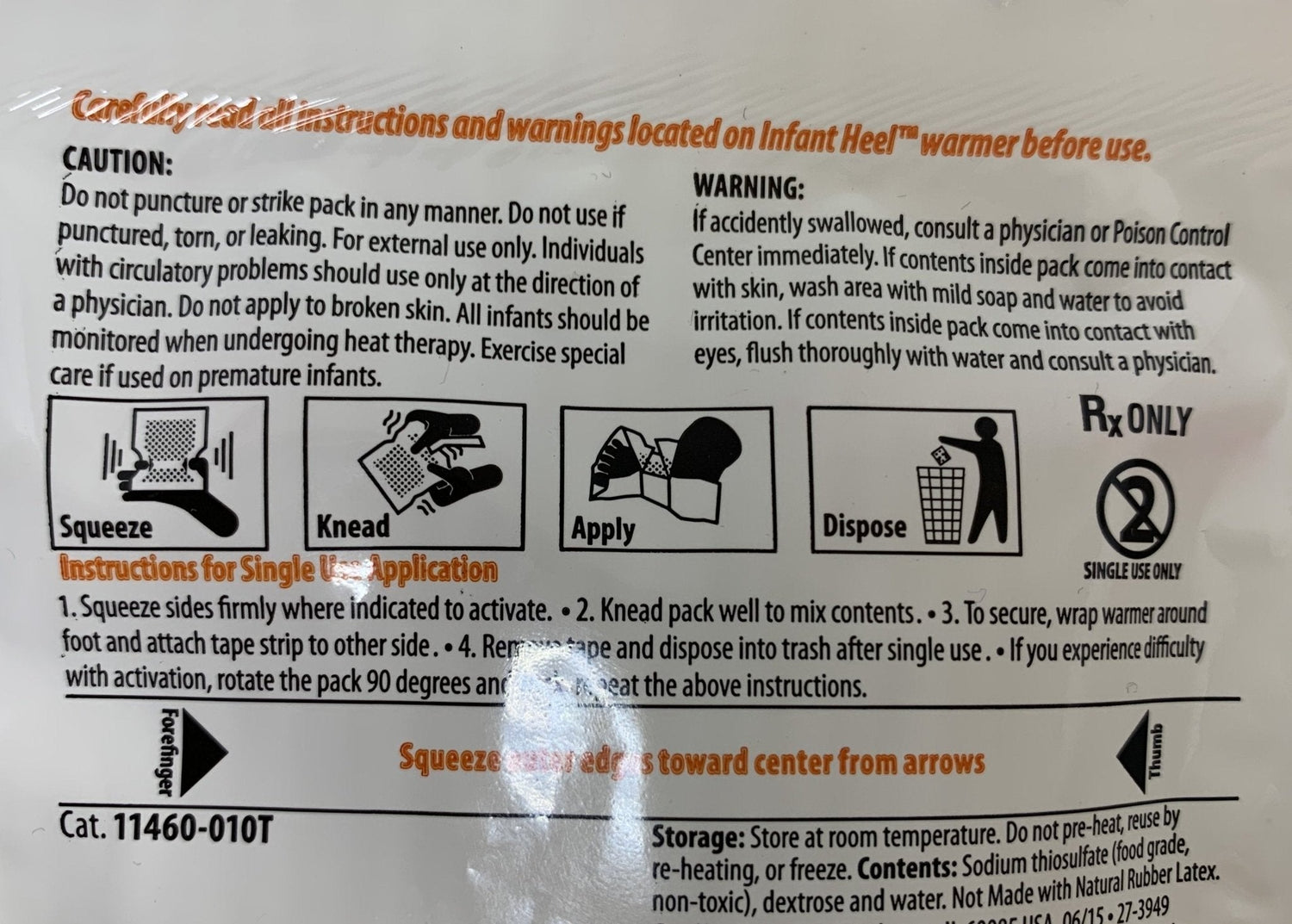 Safe and comfortable way to increase the blood flow to an infant's heel. Achieves an optimal temperature of 104deg F. No cooling-off period is required.
