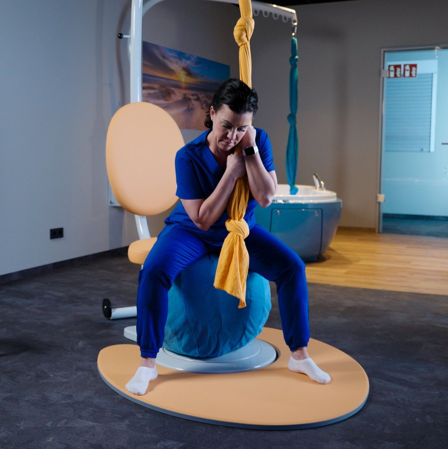 Mothers benefit from the support rope, which enables vertical birth positions that harness gravity for a faster and more natural delivery. The included PELVIBALL® base plate stabilizes movement, helping to relax the pelvic floor while maintaining safety. A padded backrest and ergonomic partner seat ensure both mother and partner remain supported throughout labour.