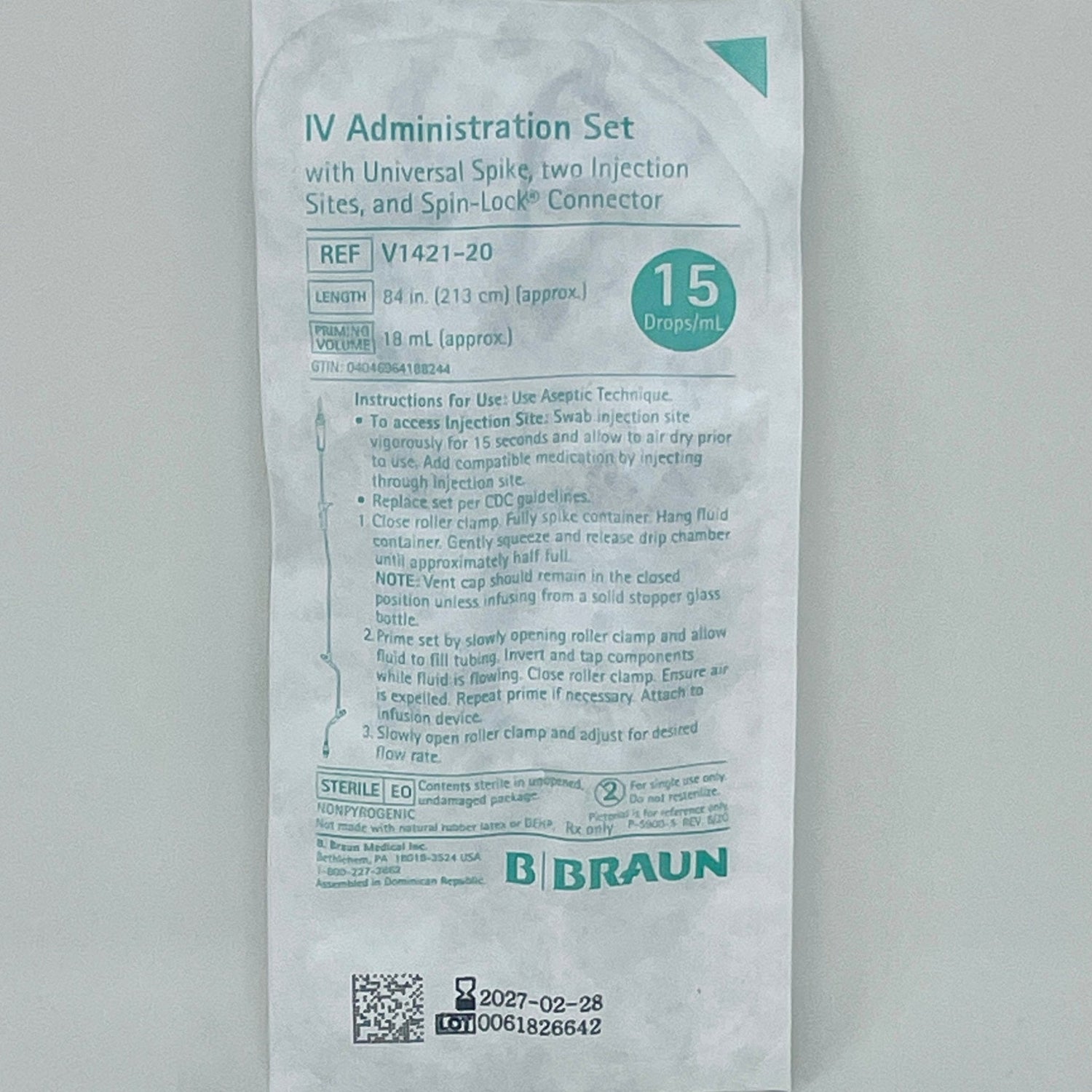 - Drop Rate: 15 drops/mL (Macrodrip)