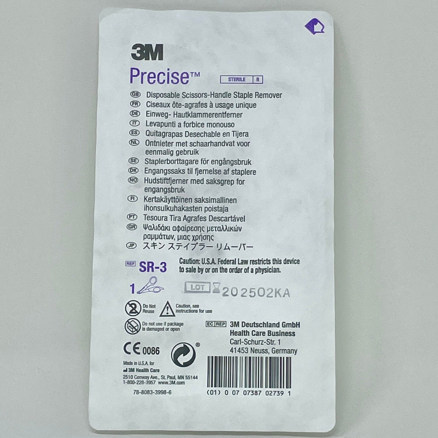 The 3M™ Precise™ Disposable Skin Staple Remover is designed for quick, effective, and gentle removal of surgical staples. Engineered to remove staples in the same direction they were implanted, it helps minimize patient discomfort and makes the removal process simple and efficient.