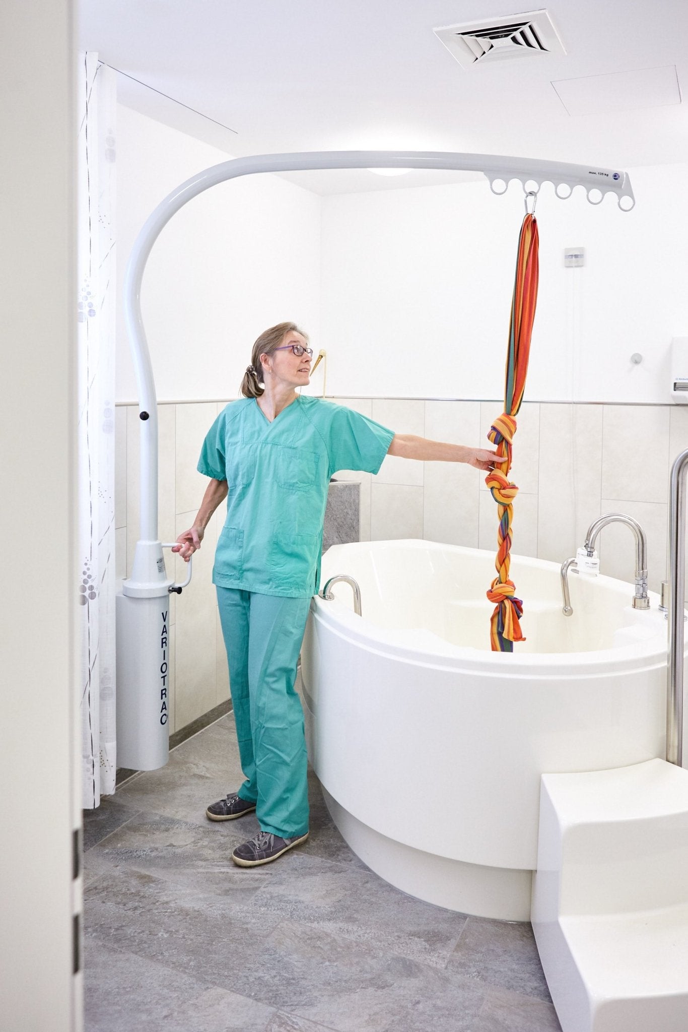 Whether above the delivery tub, the birthing stool or the delivery bed – the Variotrac covers all areas in the delivery room – And this with only one system.